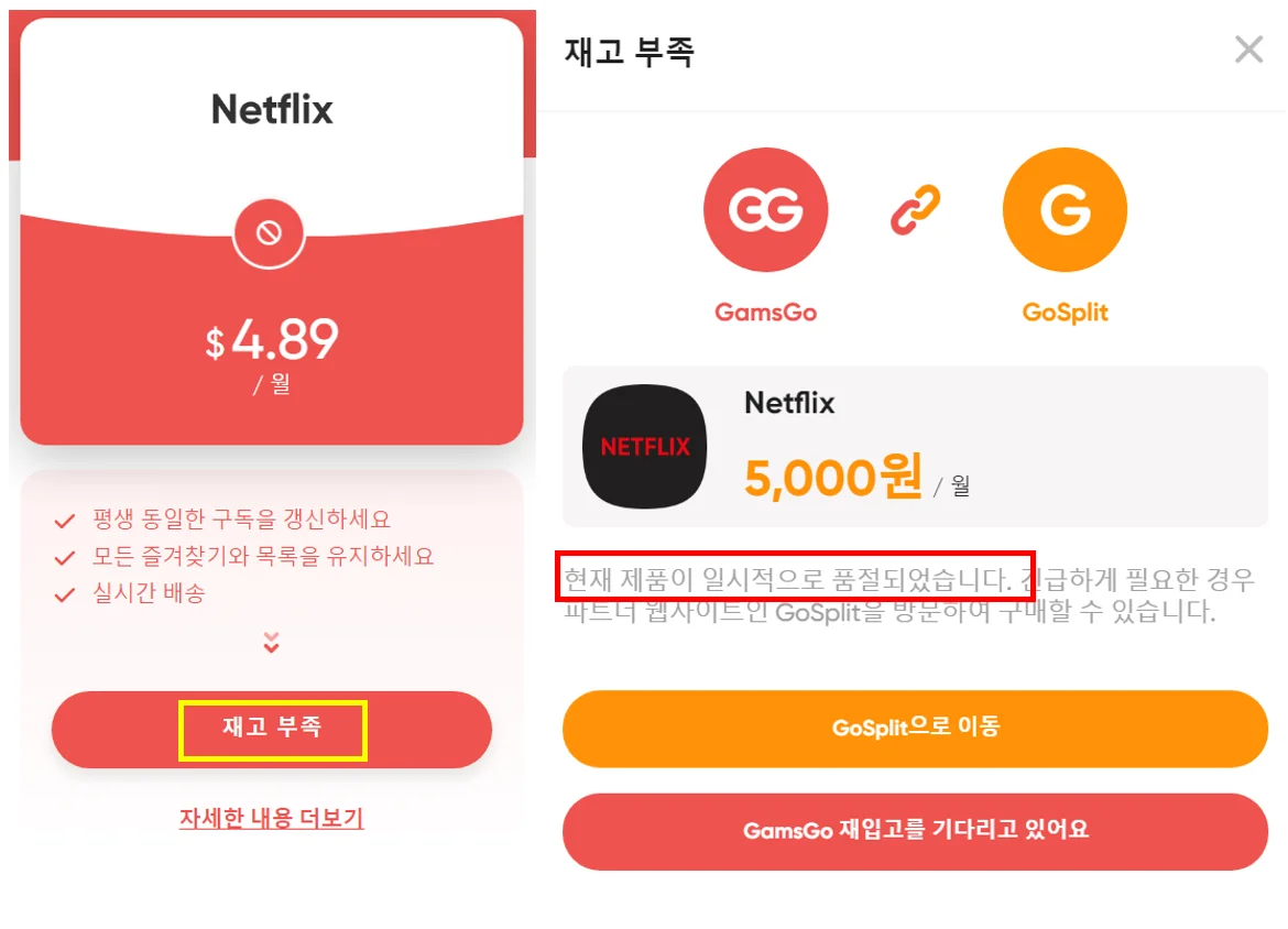 겜스고 넷플릭스 재고부족 사태