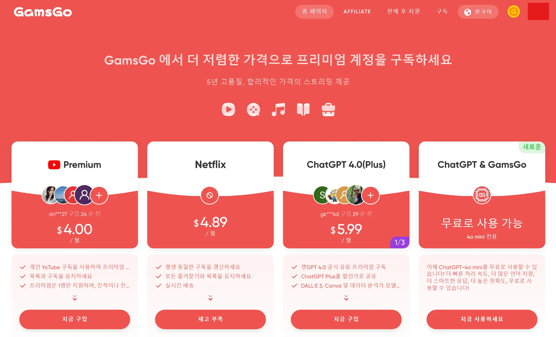 급기야, 겜스고는 쏟아지는 고객 문의와 환불 요청을 감당하지 못하고 한국 공식 홈페이지에서 넷플릭스 상품을 ‘재고 부족’이라고 표기하고, 판매를 일시적으로 중단했어요.