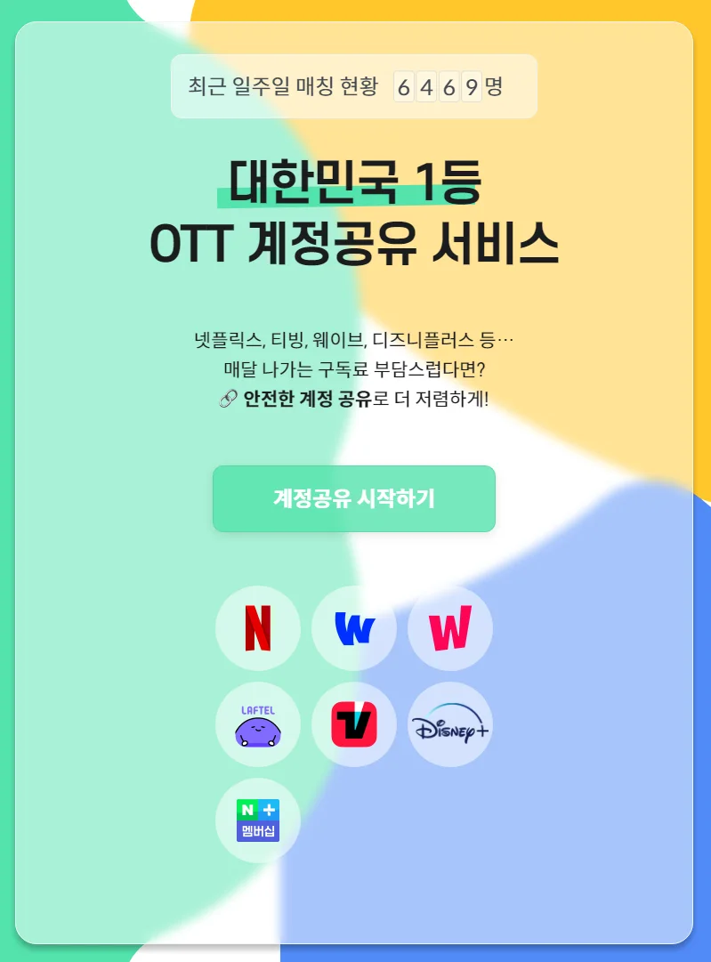 ✔️ 국내 최다 이용자를 보유하고 있어서 공유 계정 파티 매칭이 제일 빨라요.
