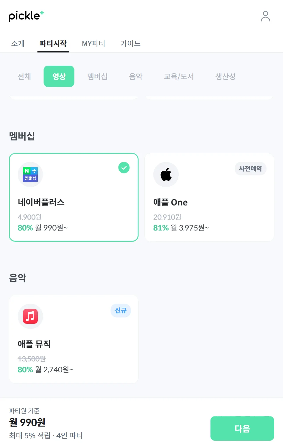 어떤 역할을 할지 선택했다면, 피클플러스에 접속해 네이버멤버십 파티에 가입하면 돼요.