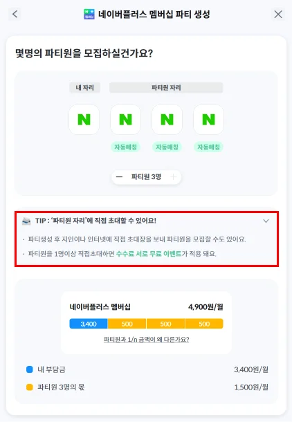 • 네이버플러스 멤버십을 직접 구독해서 파티를 생성할 수도 있고 👉 파티장