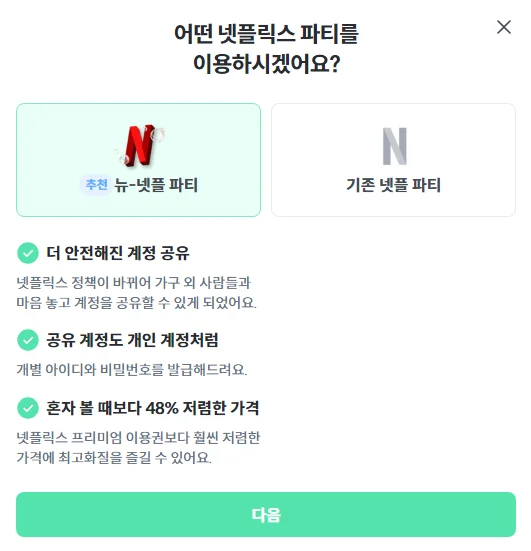 👉 불안한 넷플릭스 우회 결제 말고, 넷플릭스 반값에 이용하는 방법?! <넷플 파티 찾기>