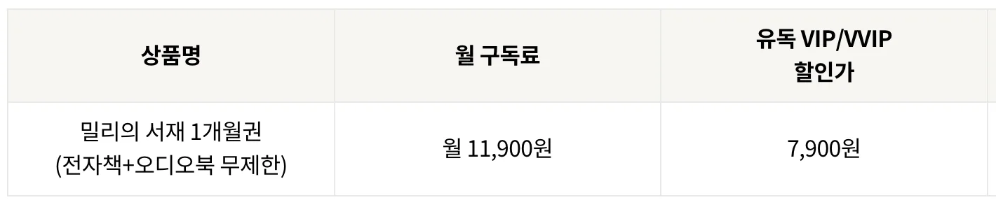 밀리의서재 요금제 종류와 가격은?