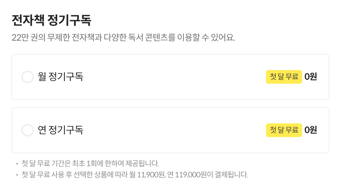 한 달 기준 9,916원이면 책 한 권 값에 모든 이북을 볼 수 있다는 가격 메리트가 있지만, 바쁘다 바빠 현대인이다 보니 과연 이 가격을 요긴하게 활용할 수 있을지 고민되실 거예요 😮‍💨 그래서 조금이라도 더 저렴하게 이용할 수 있는 방법을 찾아봤습니다 ✔️