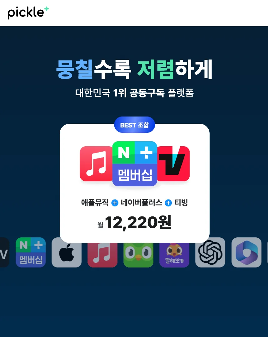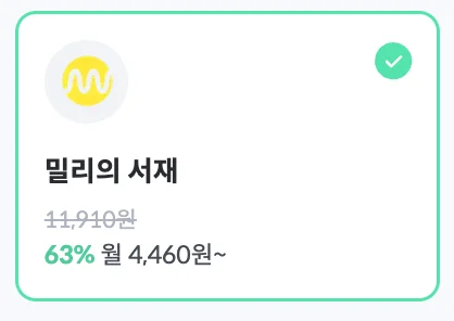 그렇게 등장한 서비스가 피클플러스라는 공동구독 플랫폼이에요. 최근 밀리의서재 구독권이 오픈되어, 60% 할인 가격에 구매할 수 있게 되었답니다 🎉