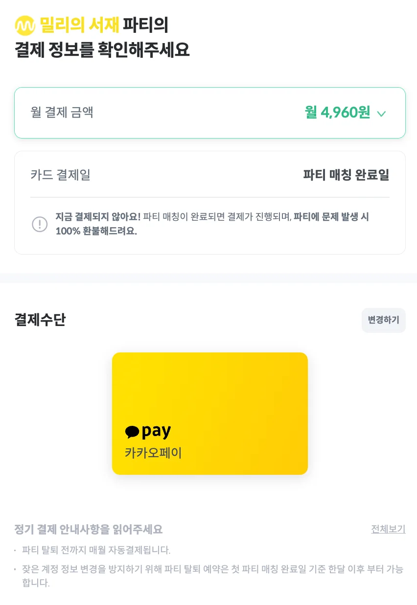 2. 파티원의 경우, 자동 결제 기능 (카드만 등록하면 매월 자동으로 결제할 수 있어요)