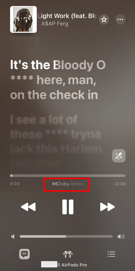 애플뮤직의 모든 음원을 돌비 애트모스로 들을 수 있는 건 아니고요, 공간 음향을 지원하는 음원의 경우 앨범 세부 사항이나 음원 재생 화면에서 [Dolby Atmos] 배지가 표시돼요.