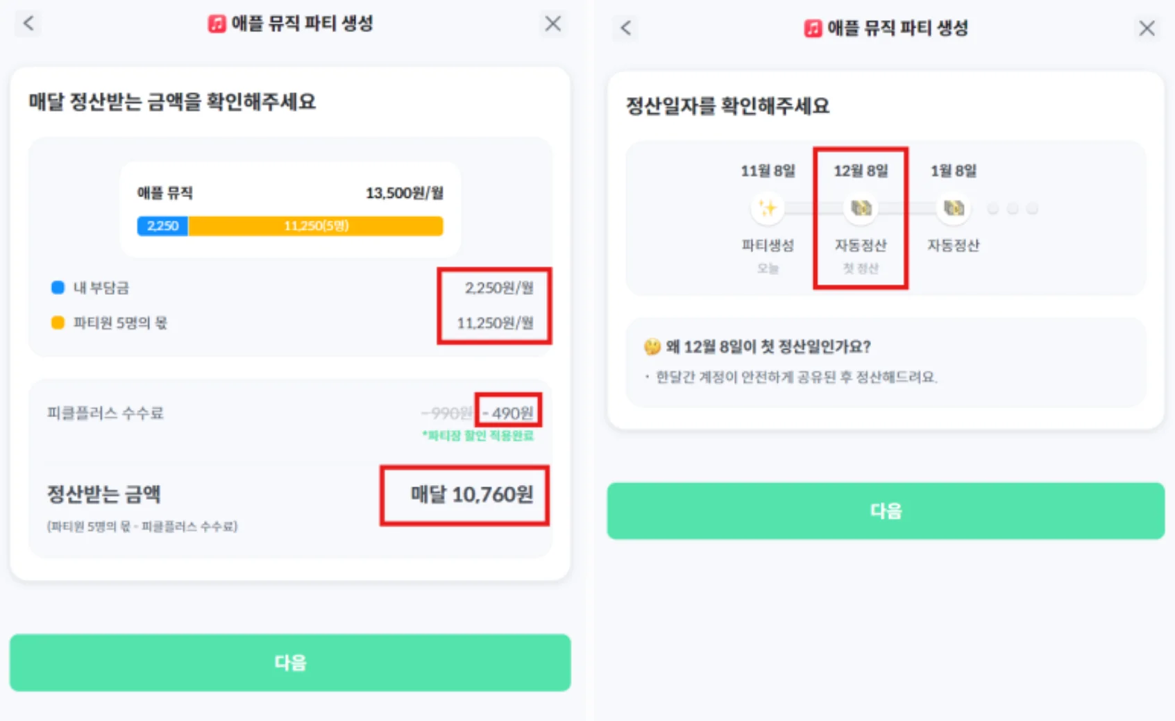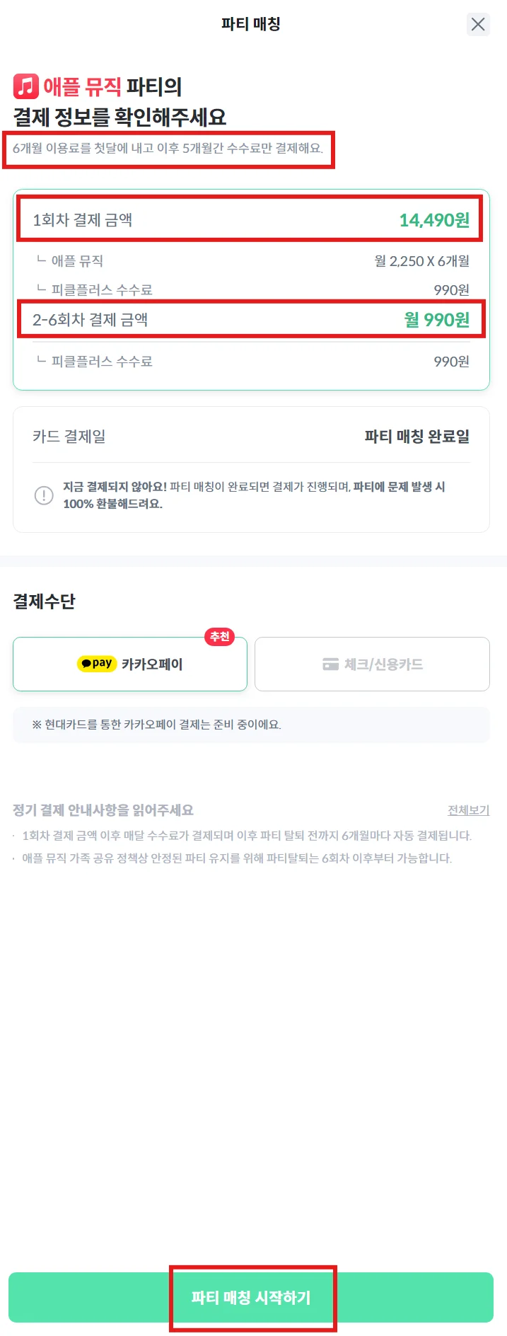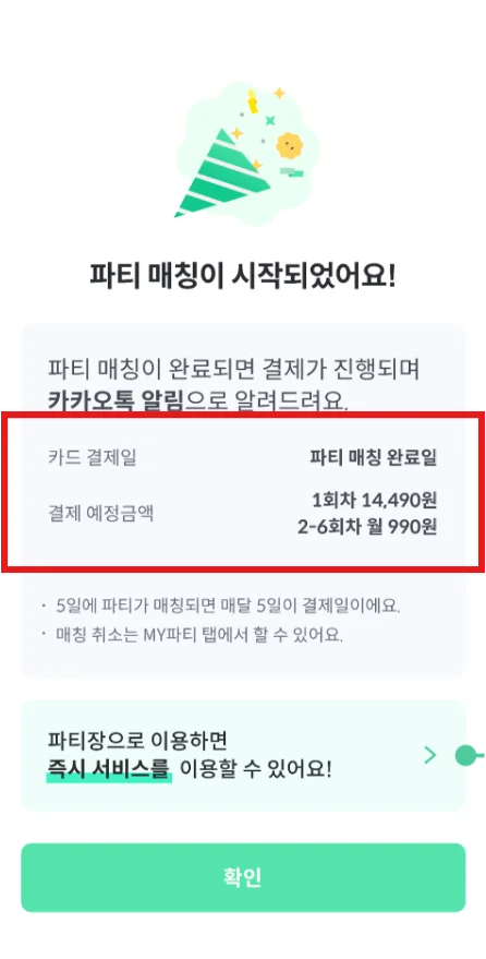 다음 달부터는 파티 매칭이 시작된 날짜마다 990원이 결제됩니다.