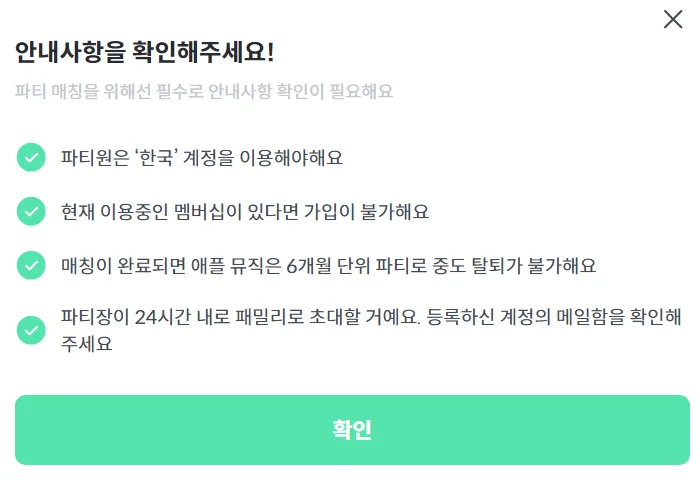 ✅ 애플뮤직은 6개월 파티로, 중도 해산 불가능