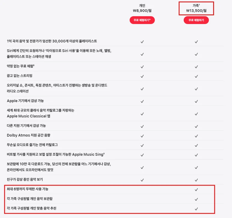 오늘의 애플뮤직 할인 방법에서 활용할 요금제는 ‘가족 멤버십’이에요.