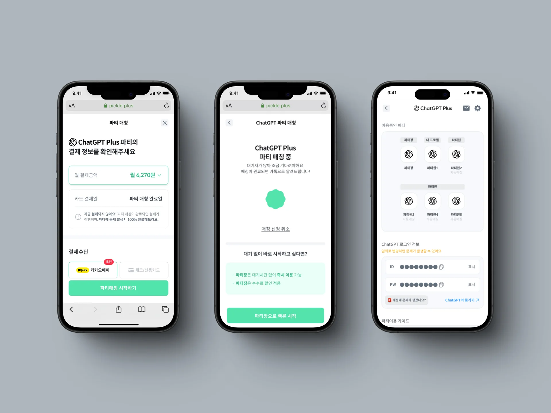 피클플러스를 이용하면 자동으로 멤버를 매칭해주고, 정산까지 알아서 처리해주기 때문에 부담 없이 저렴하게 ChatGPT Plus를 이용할 수 있어요.🤗