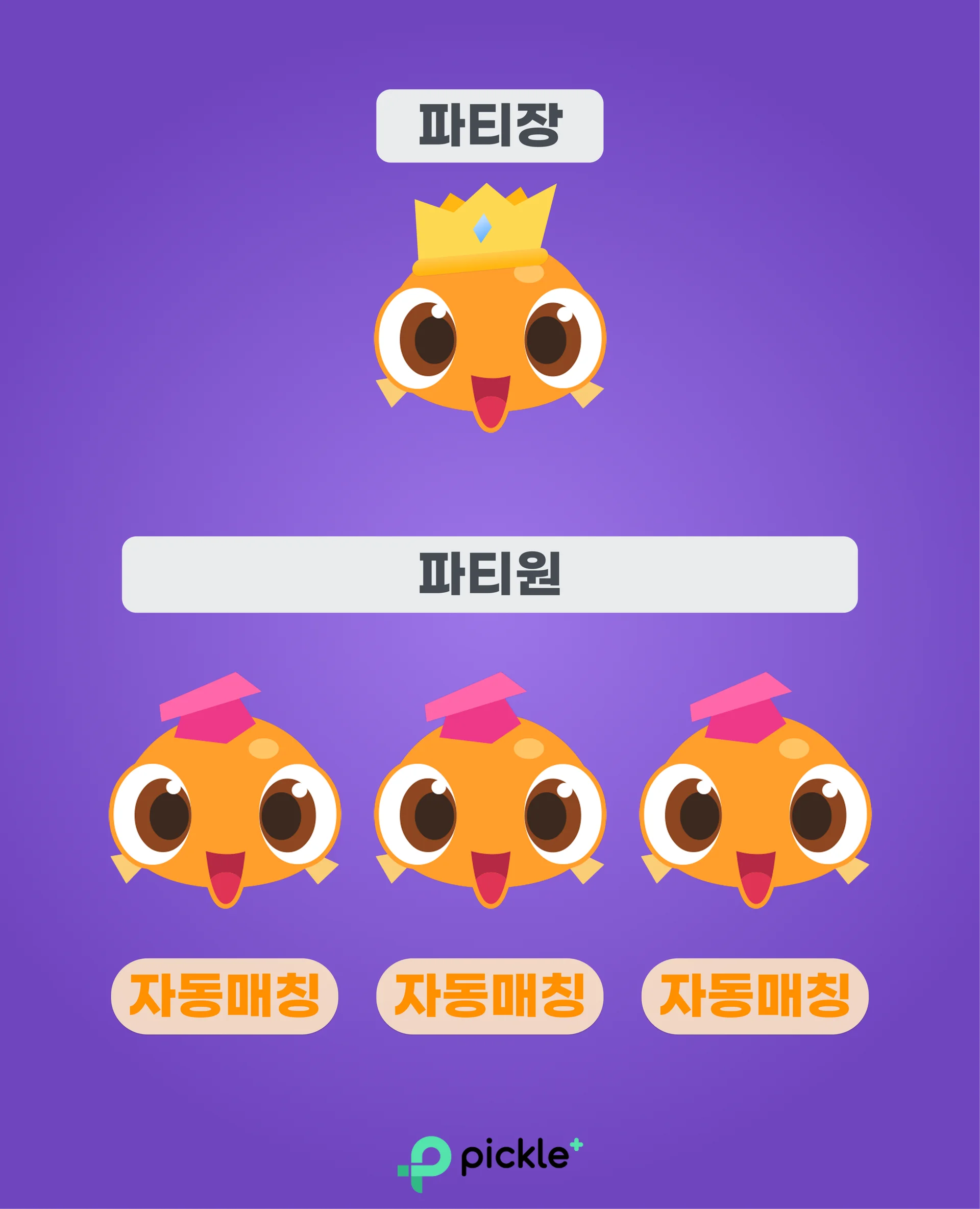 피클플러스가 나머지 파티원을 자동으로 연결해줘요.