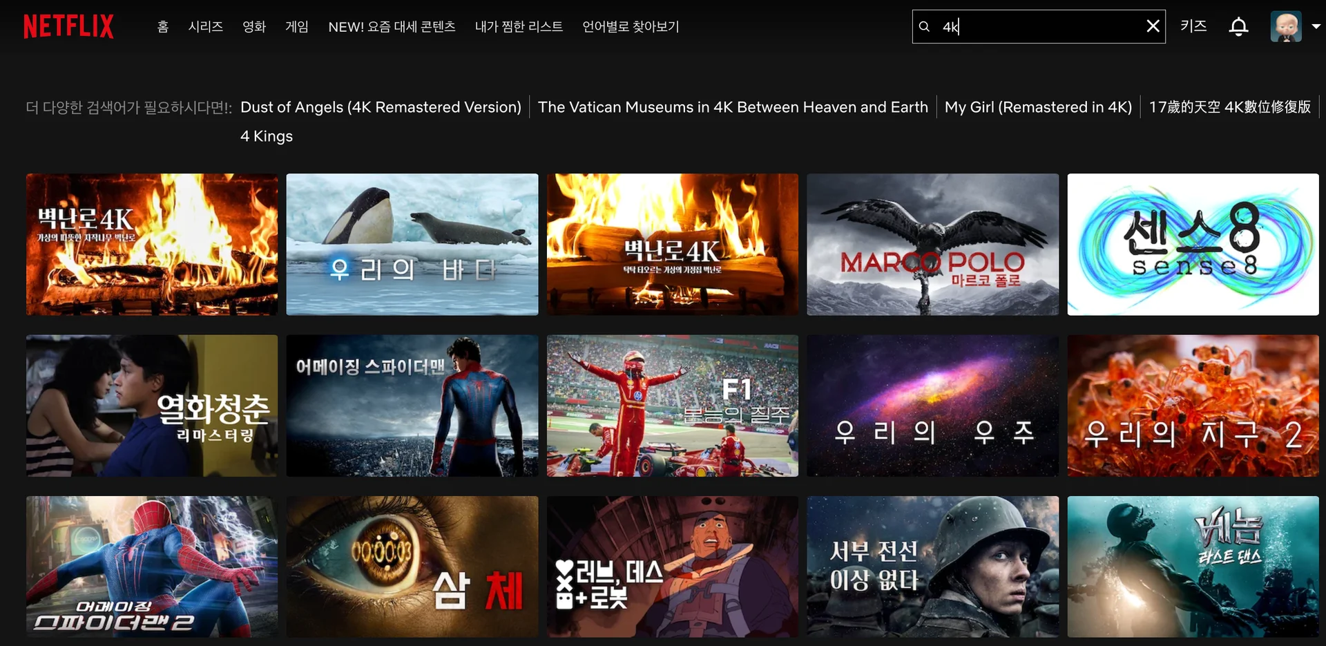 넷플릭스에서 4K UHD 화질은 프리미엄 요금제에서만 지원됩니다.