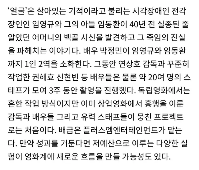 [공지] 영화 리뷰 얼굴 관람평 줄거리 결말 반전 박정민 1인 2역 시각장애 연기